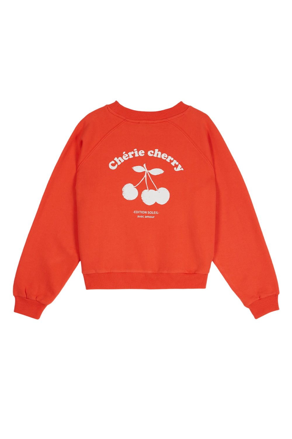 A soft organic cotton sweatshirt featuring an iconic cherry. Oversized fit with a shorter body and raglan sleeves.