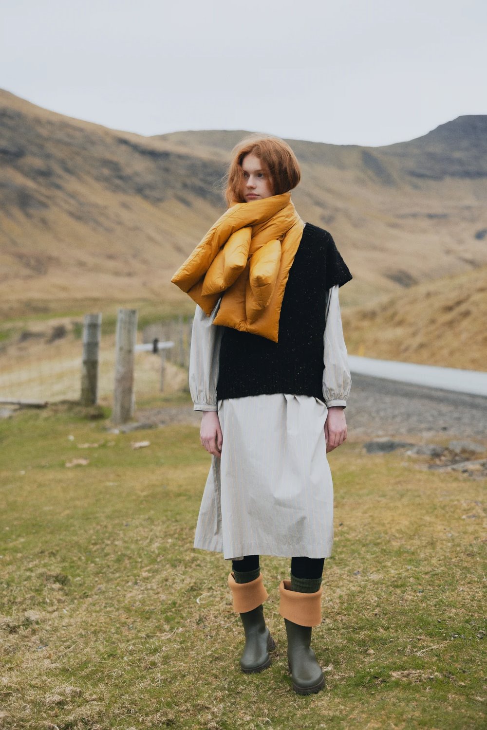 The Harper is a sleeveless V-neck vest on a mottled black yarn. Wear over your favourite shirt or alone.