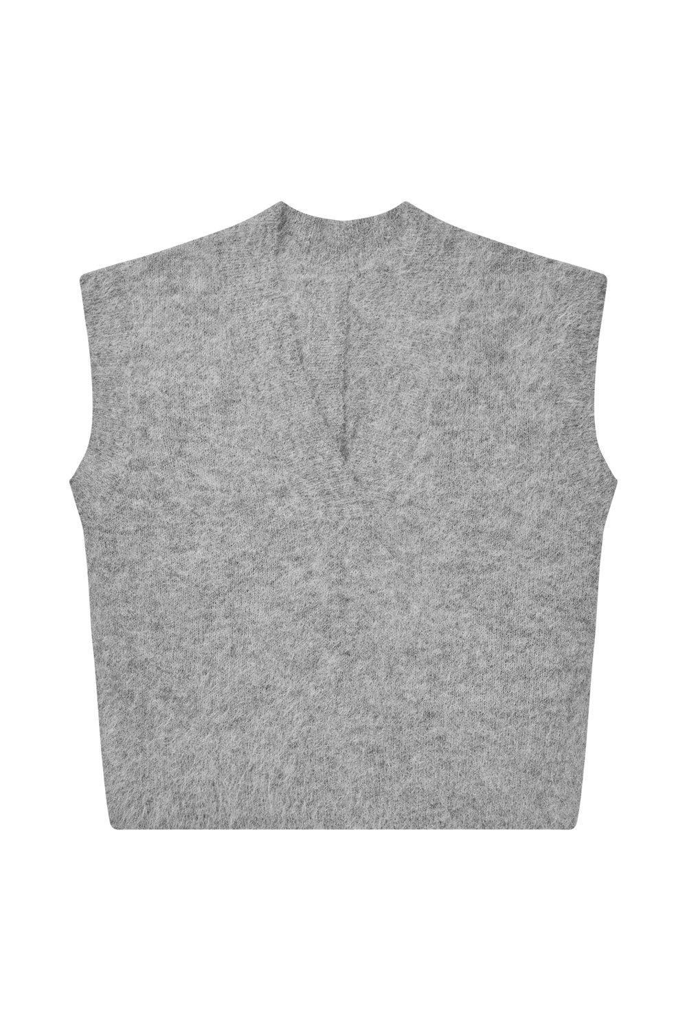 A soft and light texture knitted vest in a cool grey. The design features a V-neck at the front and decorative buttons along the back that give a beautiful twist. A perfect layering piece.