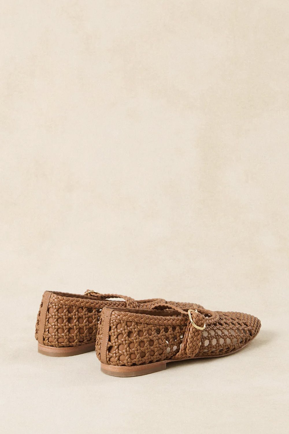 The Carlita is a bestselling shape from French label Petite Mendigote. A braided leather ballet flat with a strap featuring a jewelled gold buckle. A rounded toe shape with a leather sole and leathed lined.