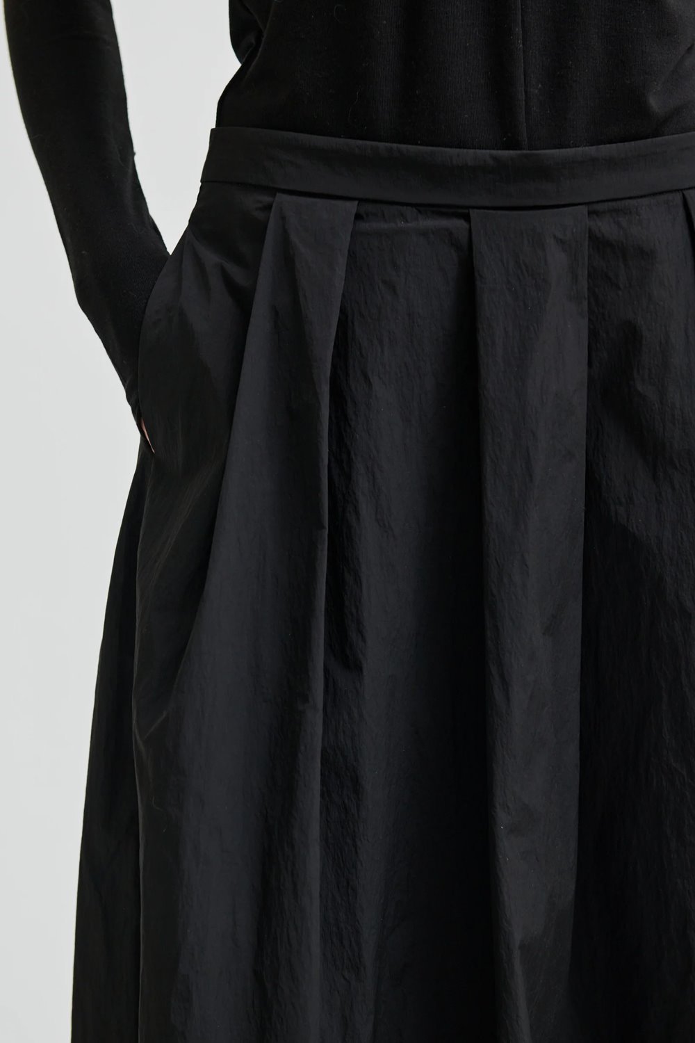 A lightweight skirt in a slightly crinkled fabric for ultimate swoosh value. Featuring a concealed zip at the back and in-seam pockets. Pleats at the waistband. A perfect piece for the party season.