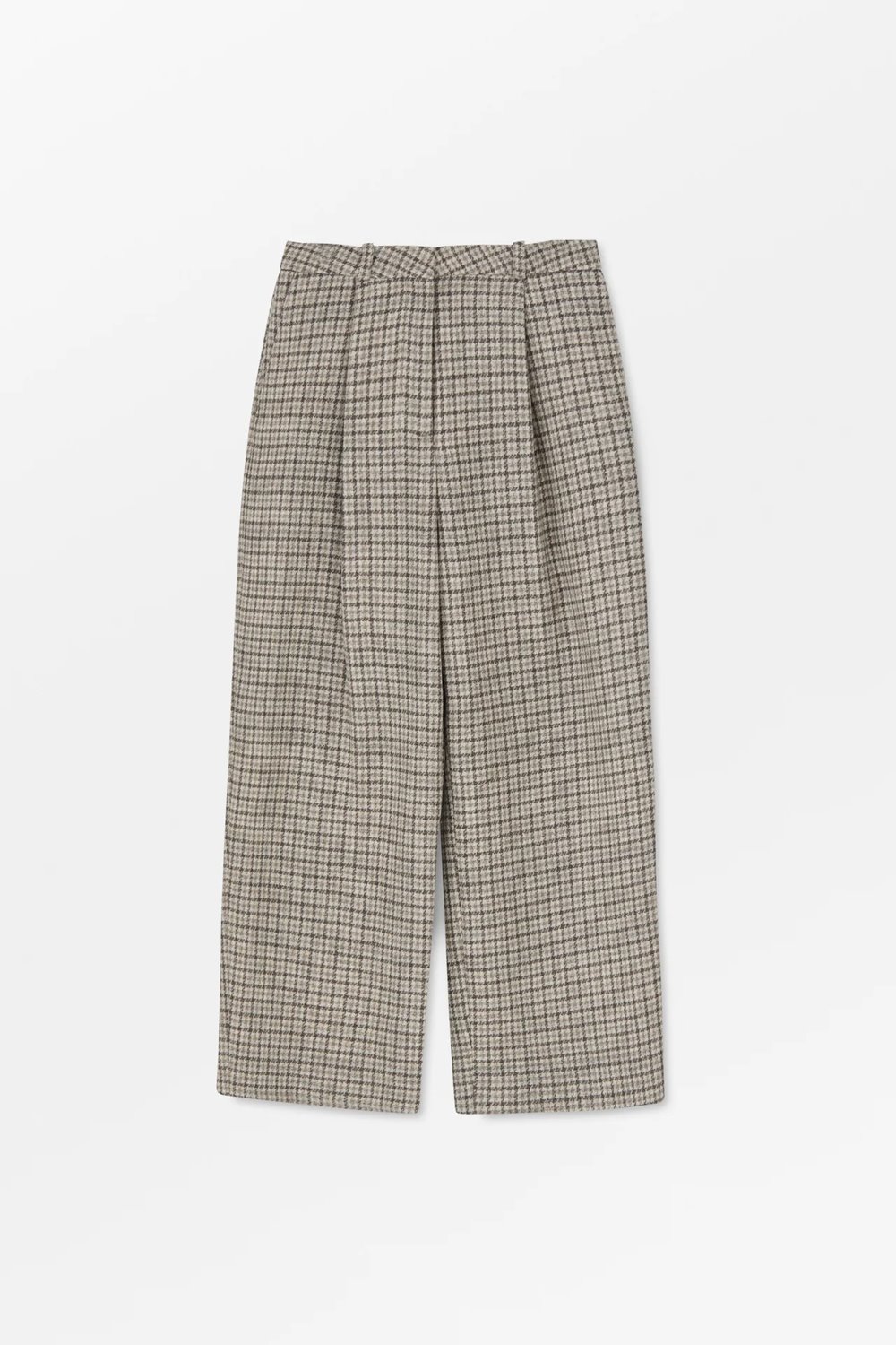 The Bob is back for Pre-Spring in a bold grey/brown check. A slightly cropped trouser from Skall Studio with a medium-high waist and tailored pleats to the front. Hidden hook closures, side pockets and a single welt pocket to the back