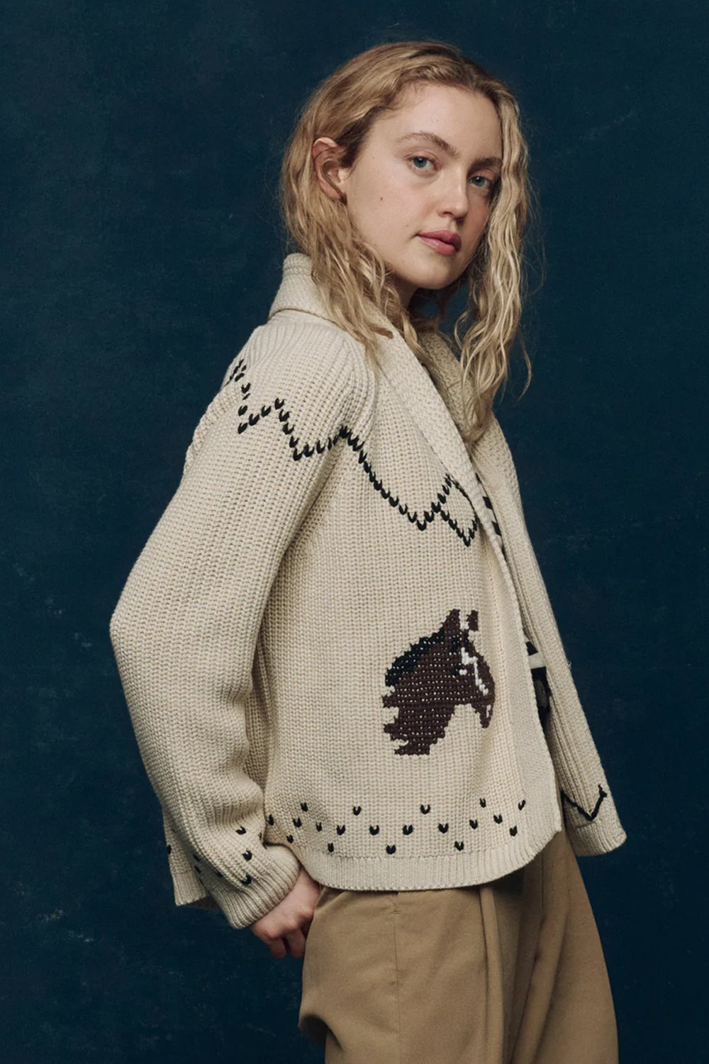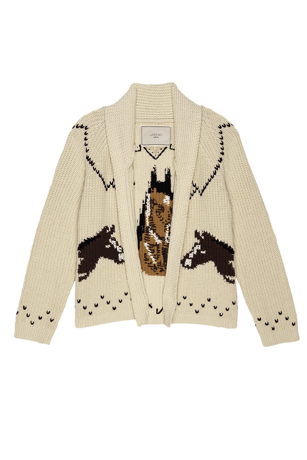 A signature The Great style, seen here with hand-embroidered horses. A soft cotton blend makes it feel easy to wear and effortless. Oversized, you might prefer to size down.