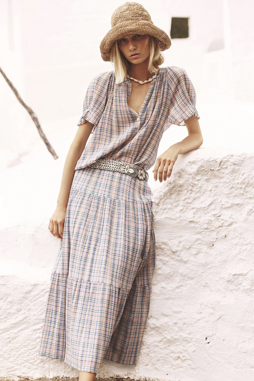 A flowy tiered skirt in the Xirena confetti check print, the Alexia features a flat front and elasticated back waist