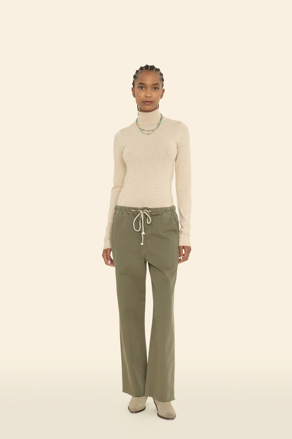 A new trouser shape from Xirena, the Eli is cut in the brands vintage washed cotton twill. A straight leg pull on pant with an elacticised drawstring waist, button closure and side seam pockets. Finished with back flap pockets and a raw edge hem.