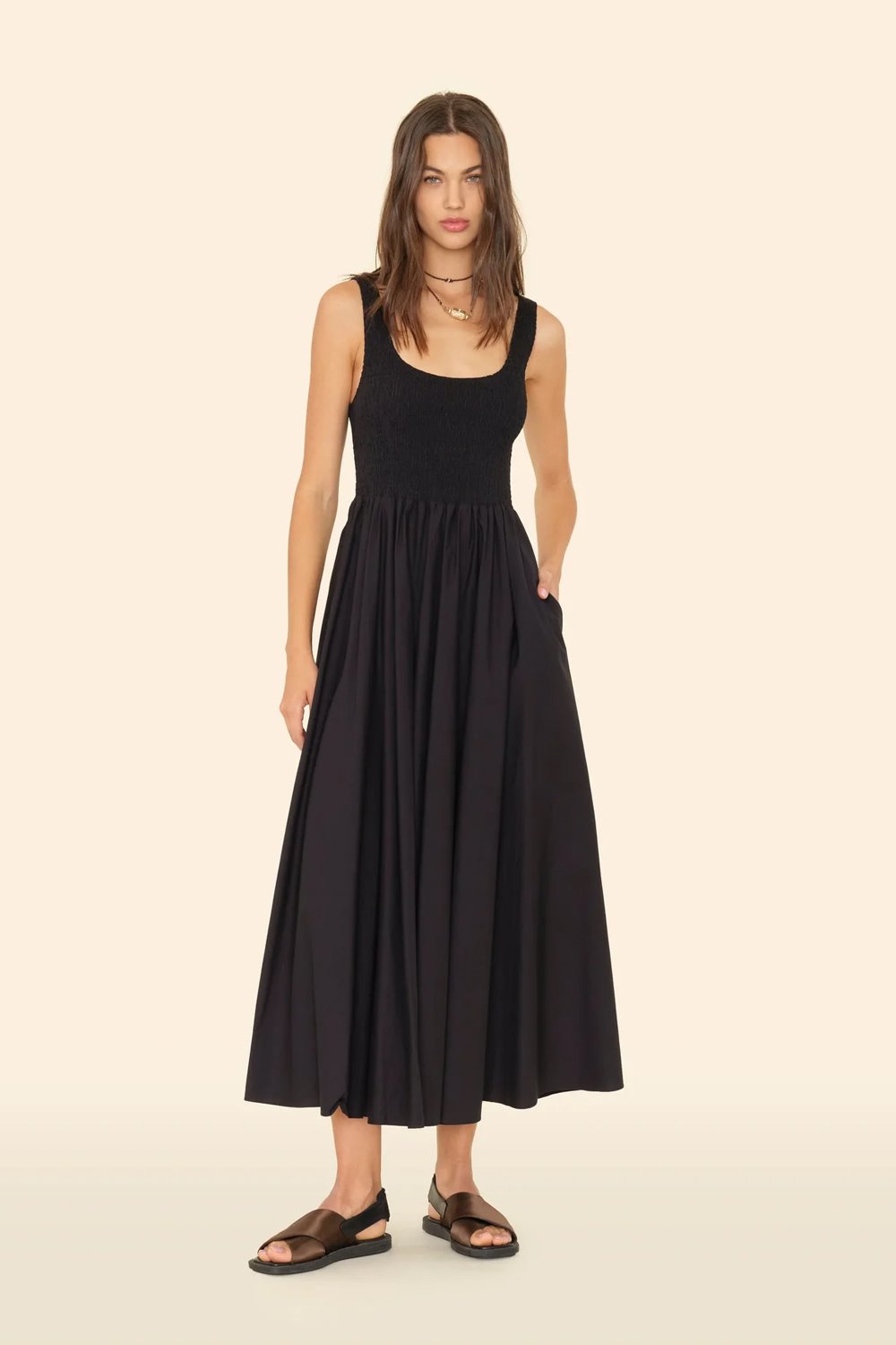 A super stylish, pared-back dress, the Florence is a sleeveless mid sundress with a square neckline and smocked bodice. Cut in a crisp paper poplin for a refined look and feel, finished with side pockets.